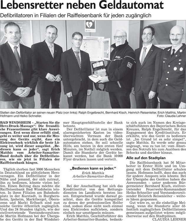 WZ 30. 3. 2016 "Lebensretter neben Geldautomat"