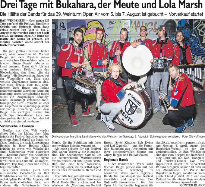 WZ 31. 3. 2016 "Drei Tage mit Bukahara,der Meute und Lola Marsh"