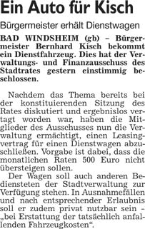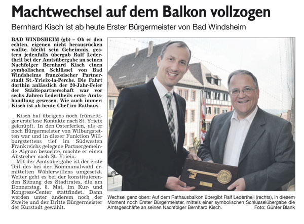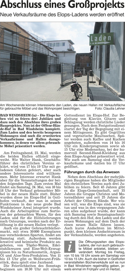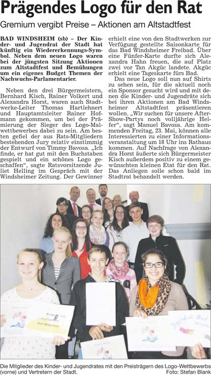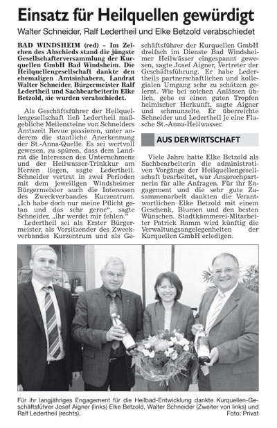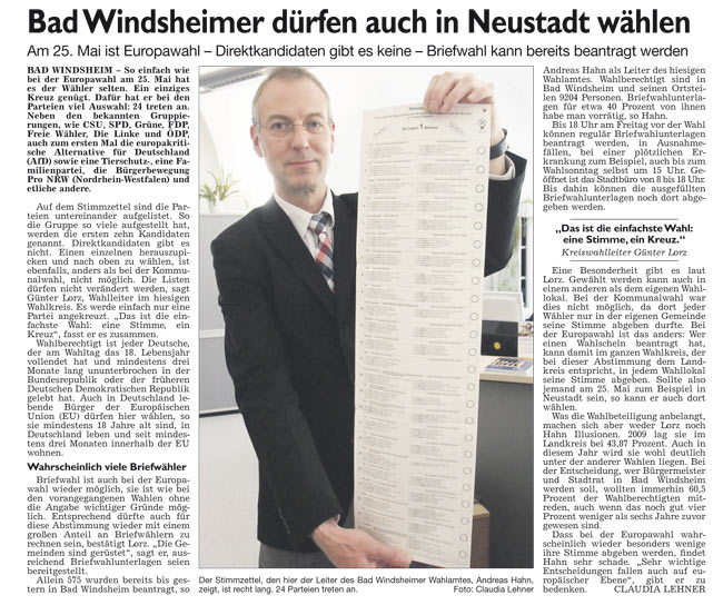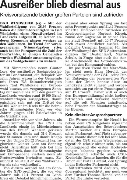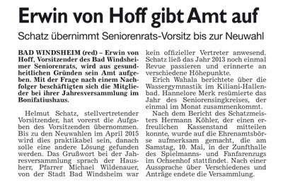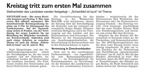 WZ 6. 5. 2014 "Kreistag tritt zum ersten Mal zusammen","Erste Börse für ehrenamtliche Helfer","Bad Winndsheimer dürfen auch in Neustadt wählen","Erwin von Hoff gibt Amt auf", "Einsatz für Heilquellen gewürdigt"