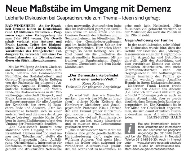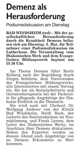 WZ 3. 5. 2014 "Demenz als Herausforderung","Mit Töpfen gegen Fluglärm"