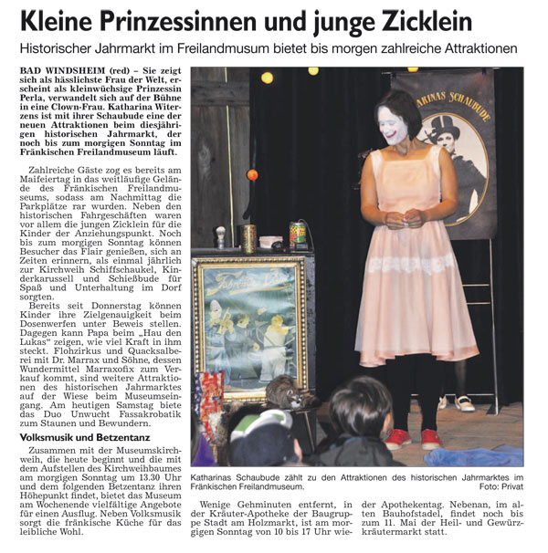 WZ 1. 5. 2014 "Marschmusik gegen den Fluglärm","Machtwechsel auf dem Balkon vollzogen", Kleine Prinzessinen und Zicklein"