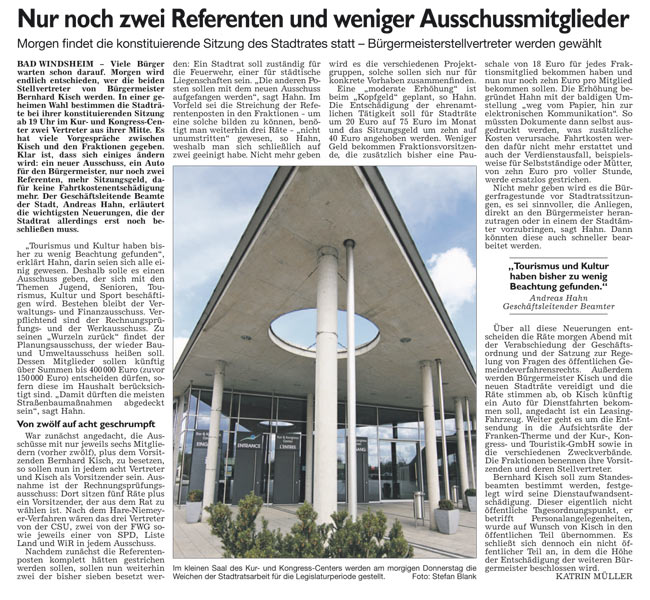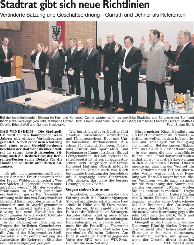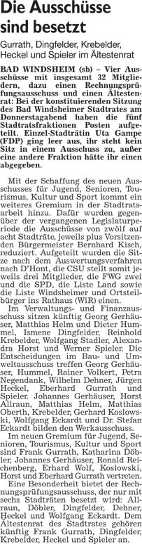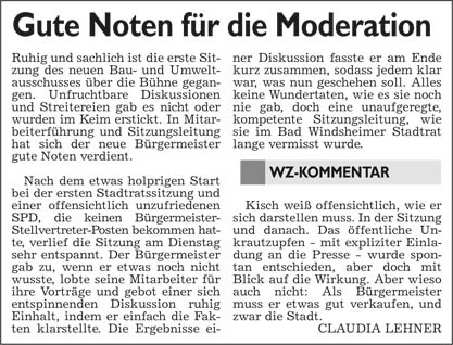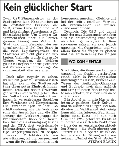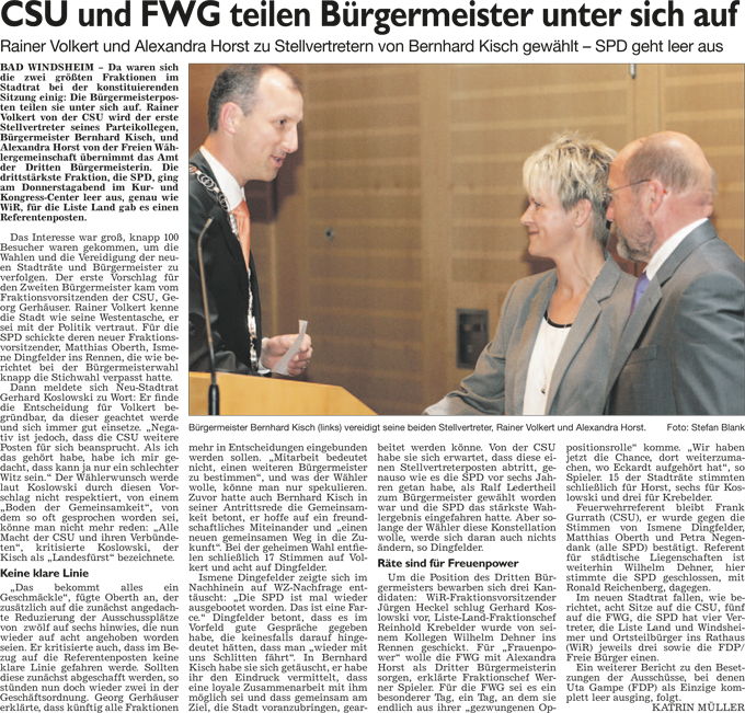 WZ 10./11. 5 2014 "CSU und FWG teilen Bürgermeister unter sich auf", "Kein glücklicher Start"