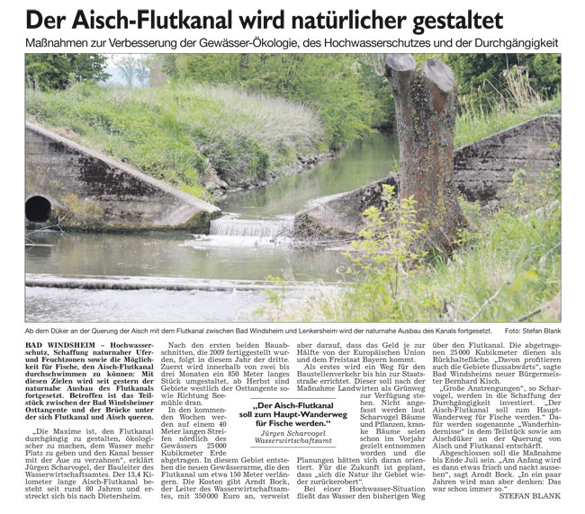 WZ 7. 5. 2014 "Nur noch zwei Referenten und weniger Ausschussmitglieder","Der Aisch-Flutkanal wird natürlicher gestaltet","Mangel an Fachkräften"