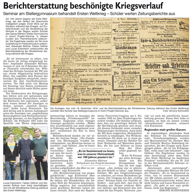 WZ 8. 5. 2014 "Neue Maßstäbe im Umgang mit Demenz","Berichterstattung beschönigt Kriegsverlauf"