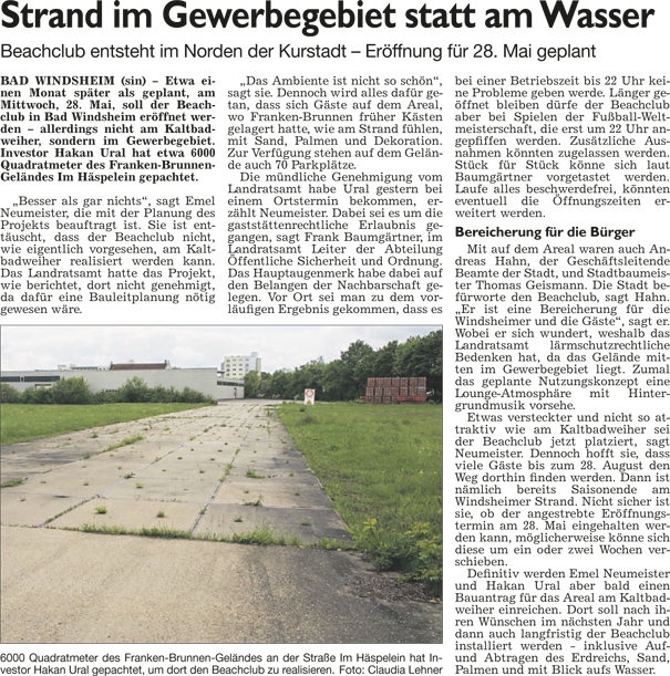 WZ 9. 5 2014 "Strand im Gewerbegebiet statt am Wasser"