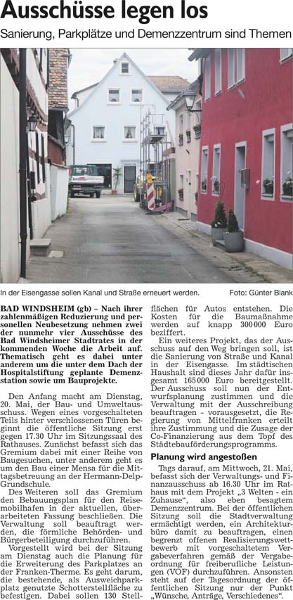 WZ 16. 5. 2014 "Neues Domiziel für große Familie entsteht", "Ausschüsse legen los"