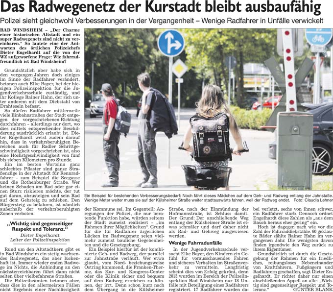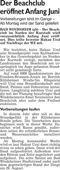 WZ 21. 5. 2014 "Das Radwegenetz der Kurstadt bleibt ausbaufähig", "Der Beachclub eröffnet Anfang Juni"