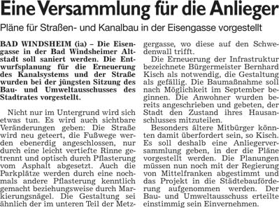 WZ 23. 5. 2014 "Eine Versammlung für die Anlieger", "Bald Pflaster statt Matsch", "Wettbewerb wird ausgeschrieben"