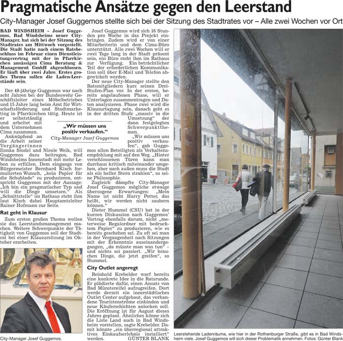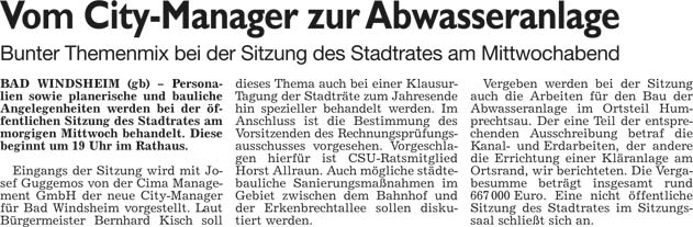 WZ 27. 5. 2014 "Vom City-Manager zur Abwasseranlage", "Ausreißer blieb diesmal aus"