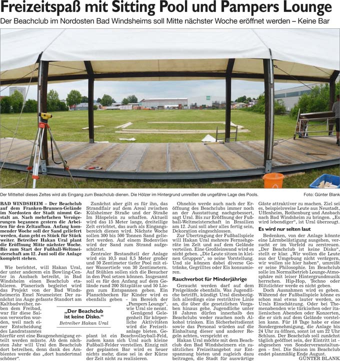 WZ 29. 5. 2014 "Freizeitspaß mit Sitting Pool und Pampers Lounge", "Neuer Job und neues Domizil mit 52 Jahren"