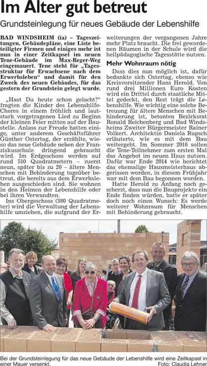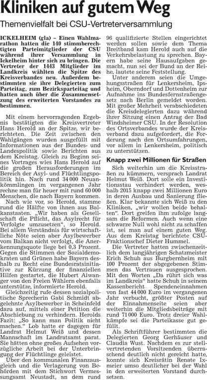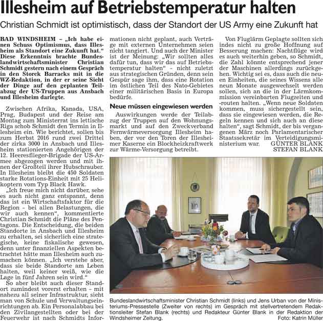WZ 30./31. 5. 2015 "Von Straßenbau bis Breitband", "Illesheim auf Betriebstemperatur halten", "Vom Zirkus-Zug-Bauer zum flexiblen Dienstleister"
