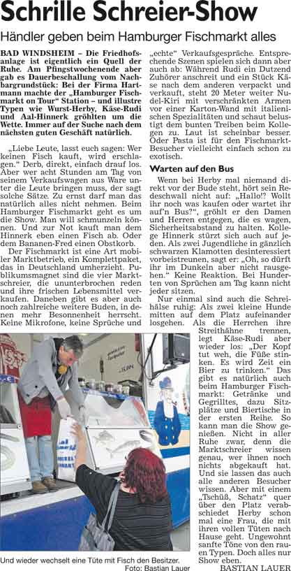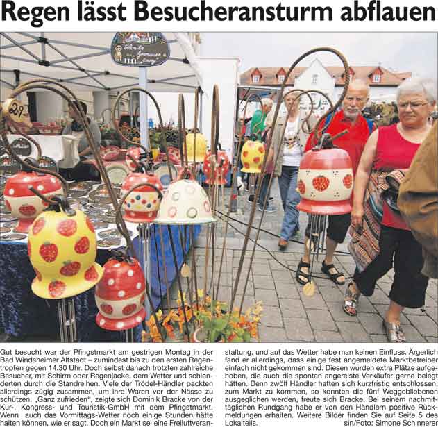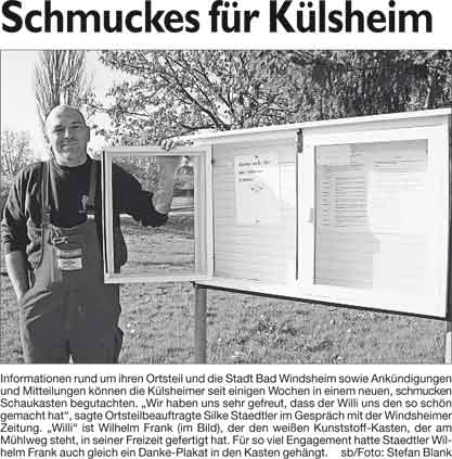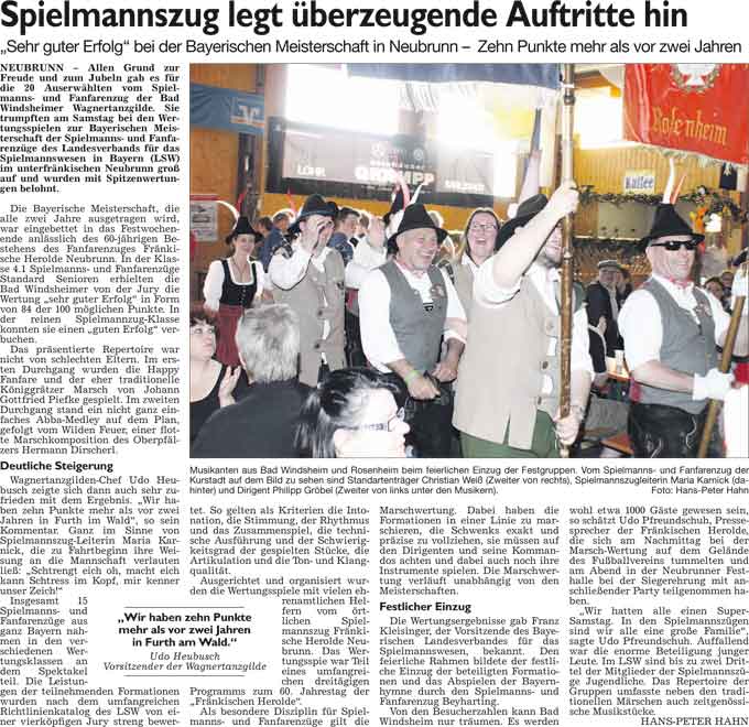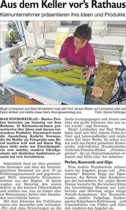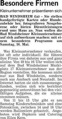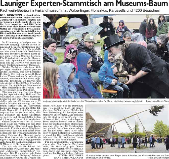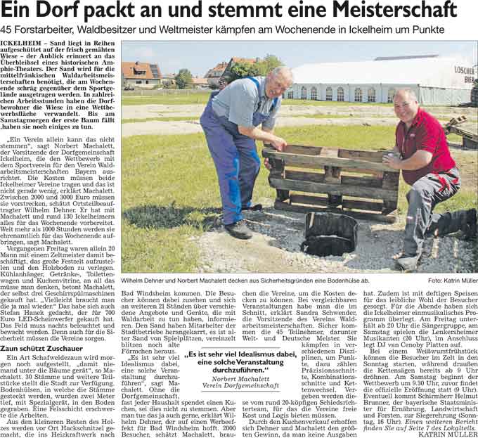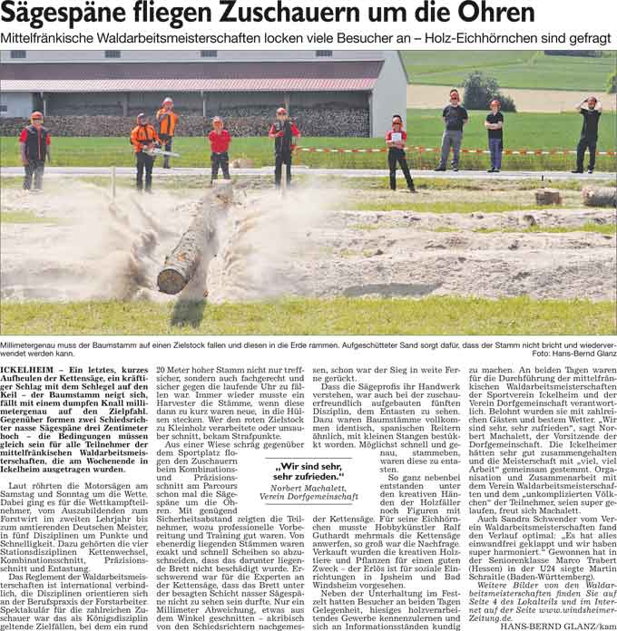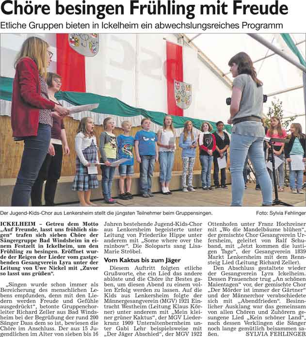 WZ 18. 5. 2015 "Chöre besingen Frühling mit Freude", "Aus dem Keller vor`s Rathaus", "Külsheimer machen keine Fehler", "Sägespäene fliegen Zuschauern um die Ohren"