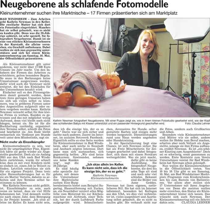 WZ 5. 5. 2015 "Figuren mit Farbe verziert", "Neugeborene als schlafende Fotomodelle", "Seit 50 Jahren dem Wasser verbunden", "Keine Superstars und Superchristen", "Zwei Anwesen für Besucher offen"