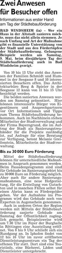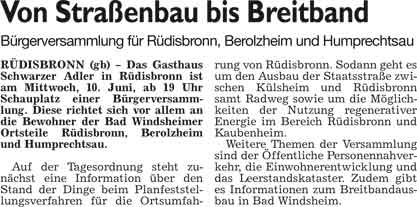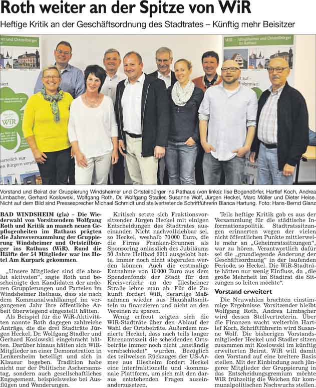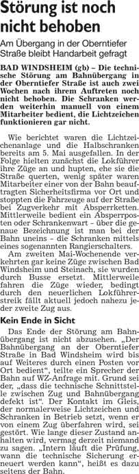 WZ 27. 5. 2015 "Wiebelsheimer Wehr ohne Fehl und Tadel", "Schandfleck ziert Weg in die Stadt", "Für die Ortsteile engagieren und für Miteinander werben"