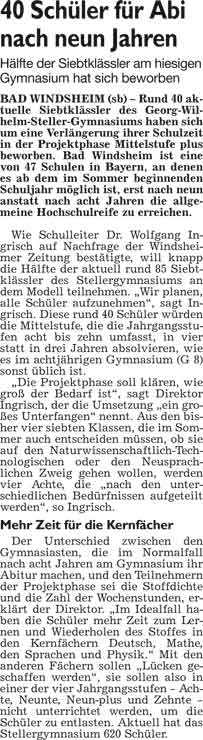 WZ 6. 5. 2015 "40 Schüler für Abi nach neun Jahren", "Viel zu tun zwischen den Förderperioden", "Beierl schmießt Komitee-Vorsitz hin"