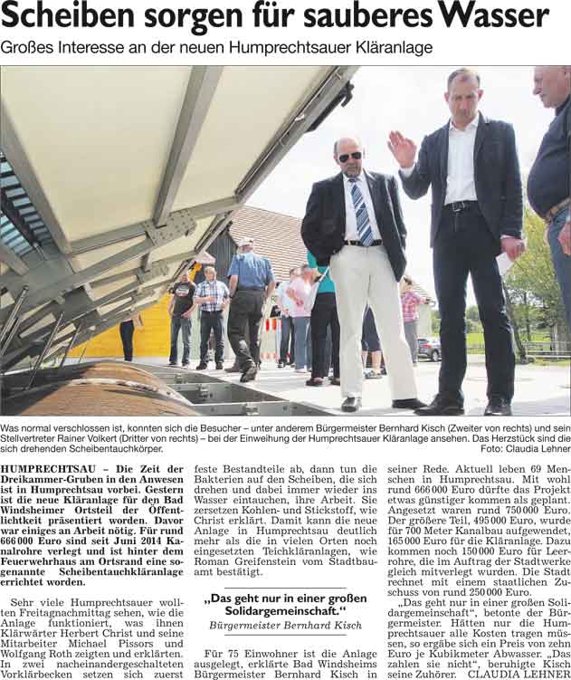 WZ 9./10. 5. 2015 "Scheiben sorgen für sauberes Wasser", "Tipps zu Sanierung", "Nicht mit Panik, aber mit Sorge"