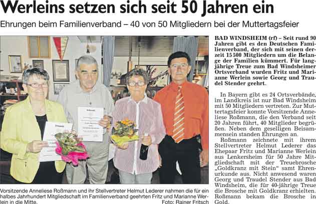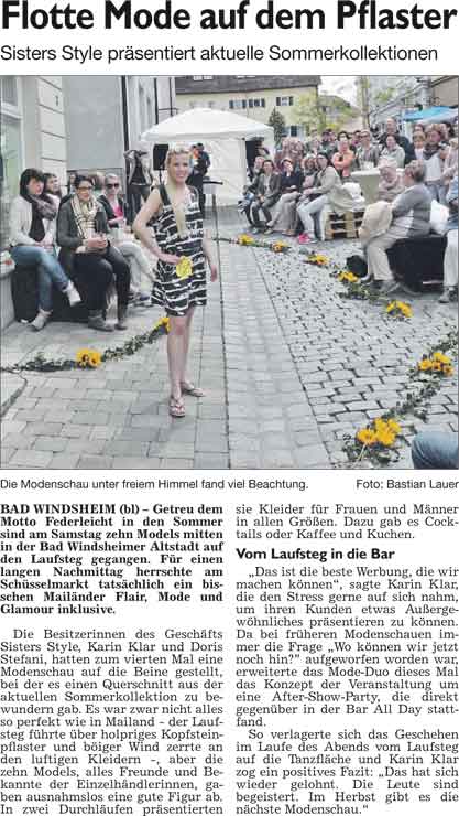 WZ 11. 5. 2015 "Werleins setzen sich seit 50 Jahren ein", "Flotte Mode auf dem Pflaster", "Spielmannszug legt überzeugende Auftritte hin"