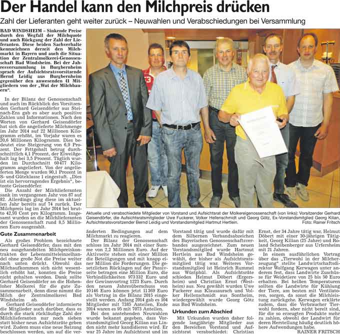 WZ 14./15. 5. 2015 "Aus Klärgas wird Strom und Wärme", "Besondere Firmen", "Der Handel kann den Milchpreis drücken", "Ein Dorf packt an und stemmt eine Meisterschaft"