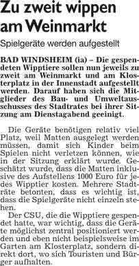 WZ 16./17. 5. 2015 "Anwohner befragen", "Zu zweit wippen am Weinmarkt"