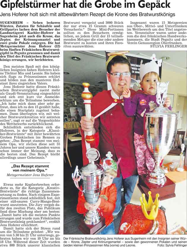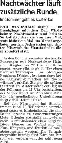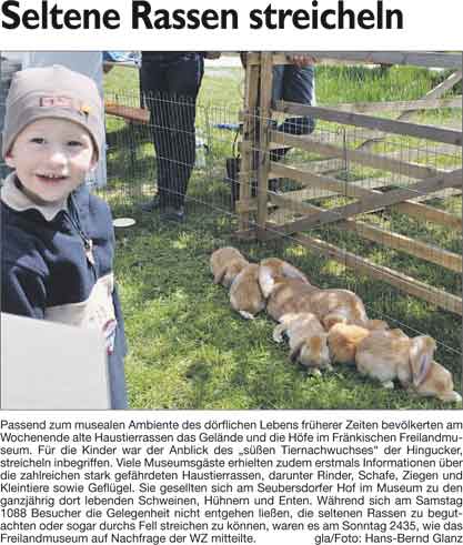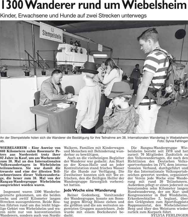 WZ 19. 5. 2015 "Seltene Rassen streicheln", "Nachtwächter läuft zusätzliche Runde", "1300 Wanderer rund um Wiebelsheim"