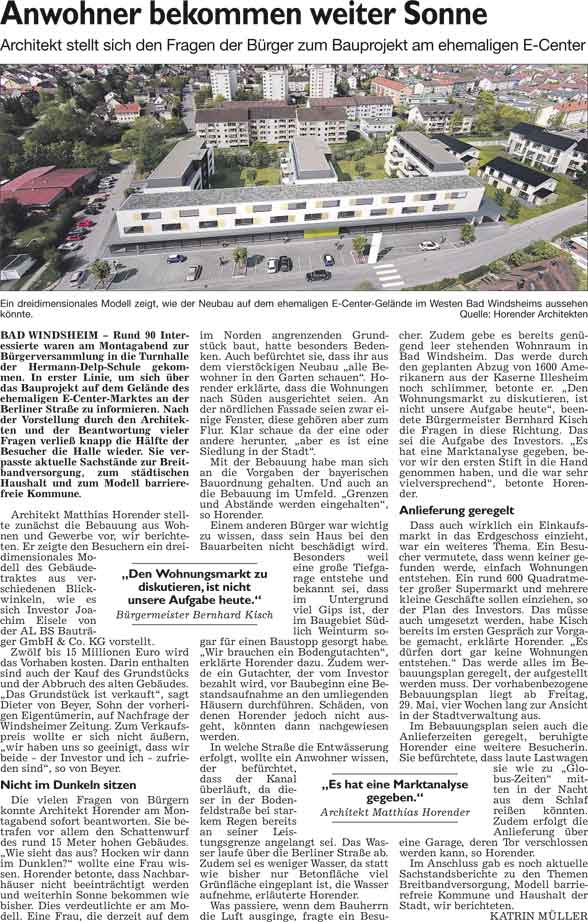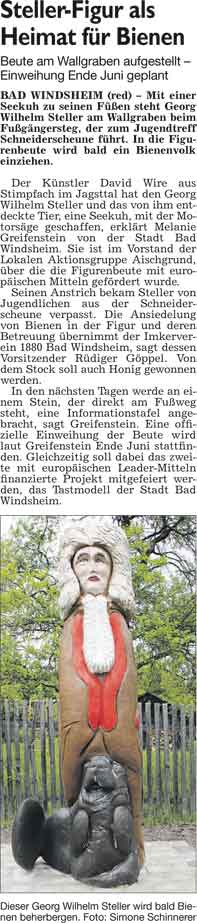 WZ 20. 5. 2015 "Anwohner bekommen weiter Sonne", "Reinigung mit Hochdruck", "Steller-Figur als Heimat für Bienen"