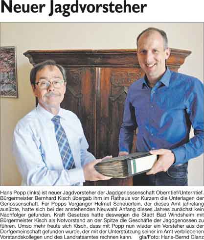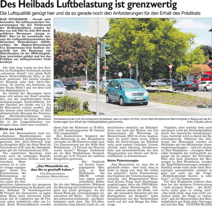 WZ 23.-25. 5. 2015 "Neuer Jagdvorsteher", "Im Alter gut betreut", "Des Heilbads Luftbelastung ist grenzwertig", "Im Winter sicher über den Steg"