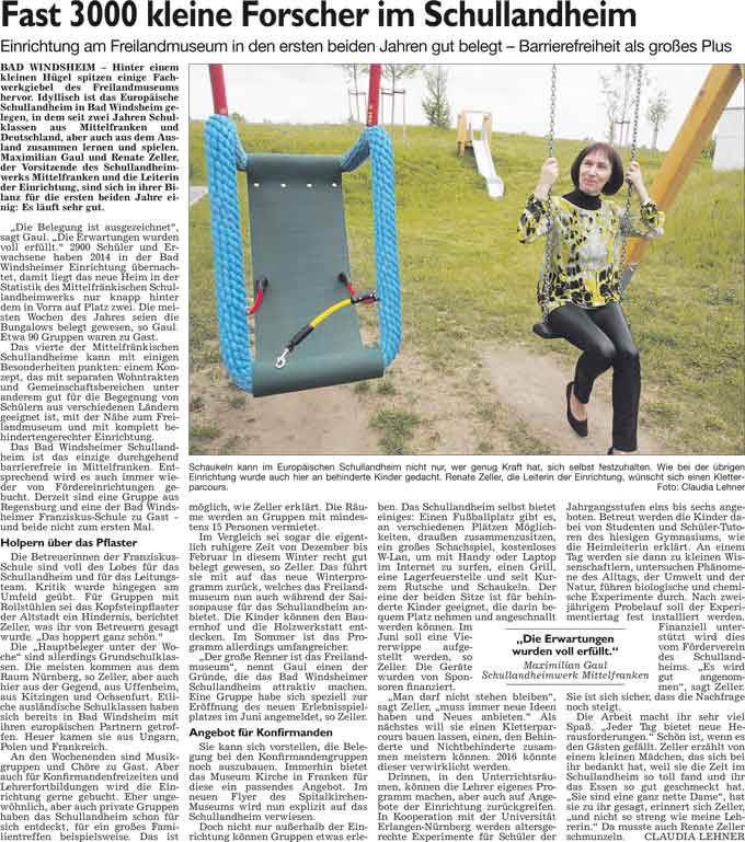 WZ 28. 5. 2015 "Gaststätte soll neu verpachtet werden", Täglich mit dem Bus nach Berlin", "Fast 3000 kleine Forscher im Schullandheim", "Lauschige Lounge für gesellige Mobilisten"