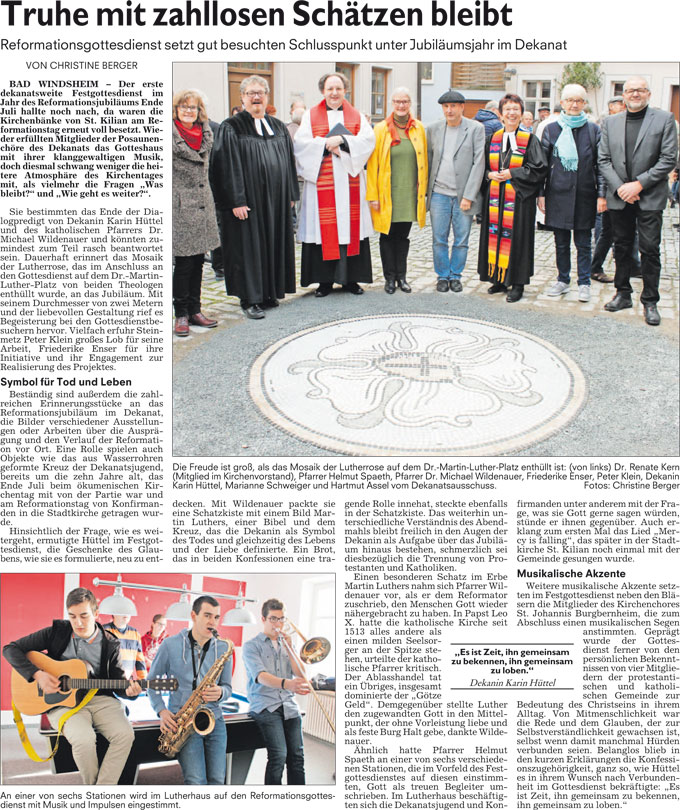 WZ 1./2. 11. 2017 "Truhe mit zahllosen Schätzen bleibt"