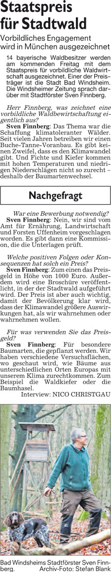 WZ 7. 11. 2017 "Staatspreis für Stadtwald"