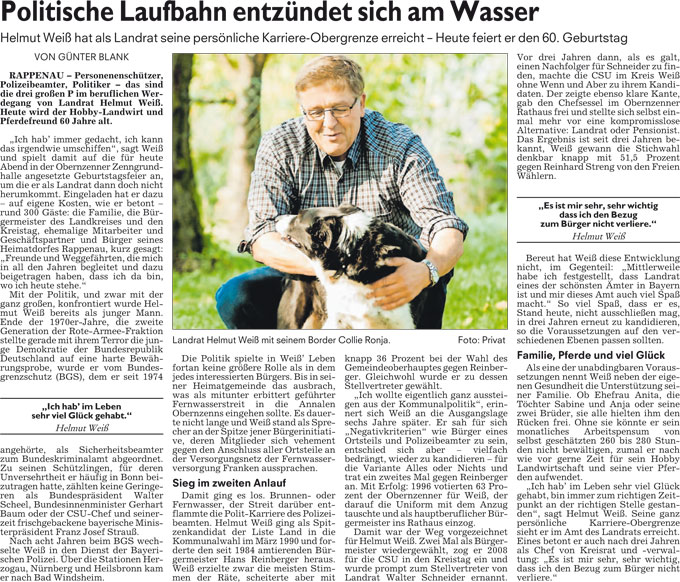 WZ 9. 11. 2017 "Politische Laufbahn entzündet sich am Wasser"
