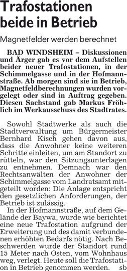 WZ 10. 11. 2017 "Trafostationen beide in Betrieb"