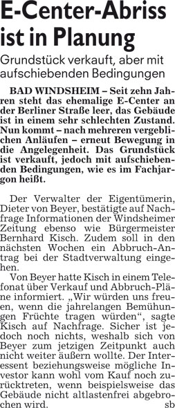 WZ 15. 11. 2017 "Bahnhof wird im Frühjahr verkauft", "E-Center-Abriss ist in Planung", "Lösung mit Amerikanern"