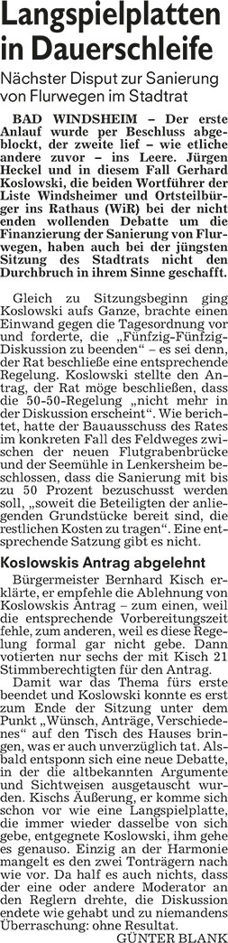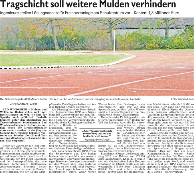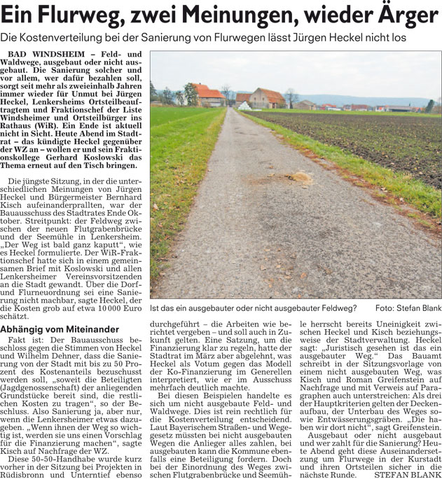 WZ 16. 11. 2017 "Ein Flurweg, zwei Meinungen, wieder Ärger", "Tragschicht soll weitere Mulden verhindern"