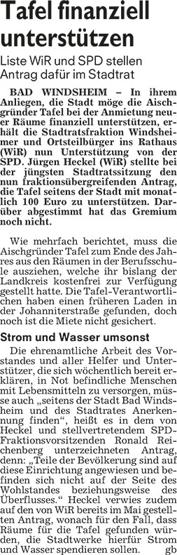 WZ 21. 11. 2017 "Tafel finanziell unterstützen"