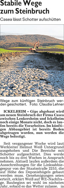 WZ 23. 11. 2017 "Sorgen um zu viel Verkehr im Neubaugebiet", "Stabile Wege zum Steinbruch"