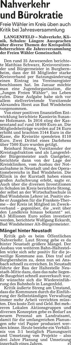WZ 24. 11. 2017 "Nahverkehr und Bürokratie"