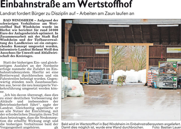 WZ 29. 11. 2017 "Einbahnstraße am Wertstoffhof"