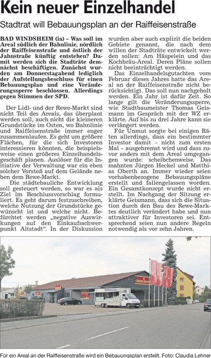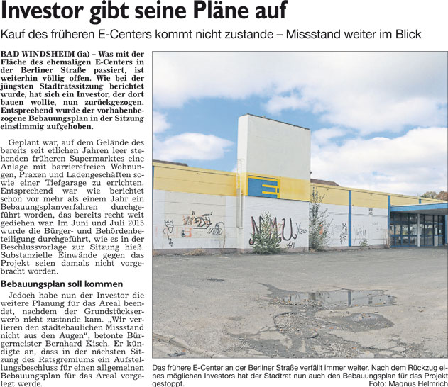 WZ 6. 10. 2016 "Entwicklung von Potenzialflächen geht zäh voran", "Investor gibt seine Pläne auf", "Bauwillige, Raser und laute Gäste"