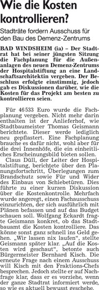 WZ 3./4. 10. 2016 "Wie die Kosten kontrollieren?"
