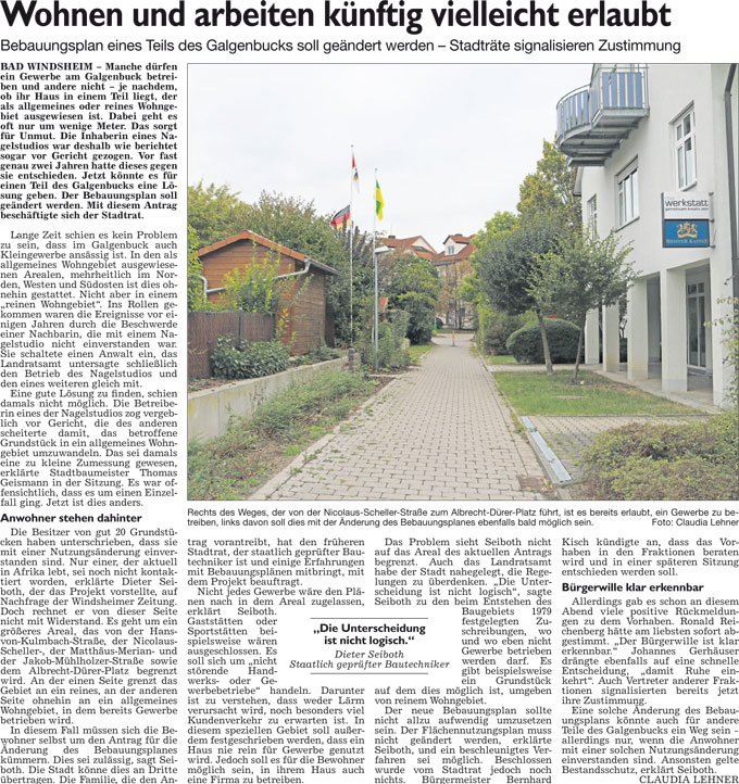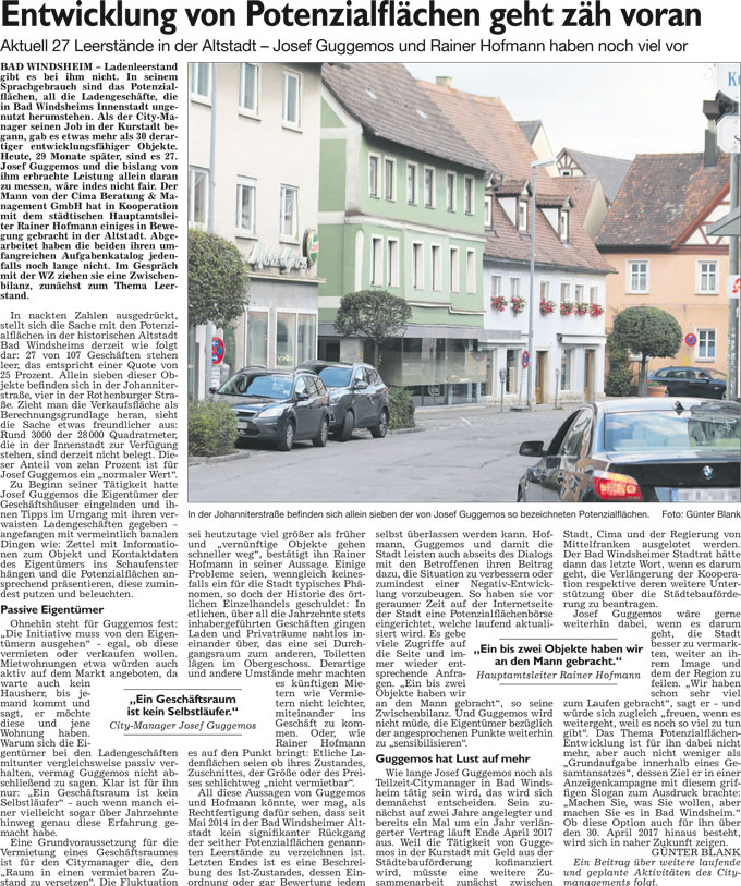 WZ 5. 10. 2016 "Wohnen und arbeiten künftig vielleicht erlaubt", "Ansprechpartner für die Modellkommune"