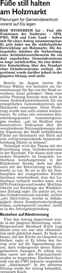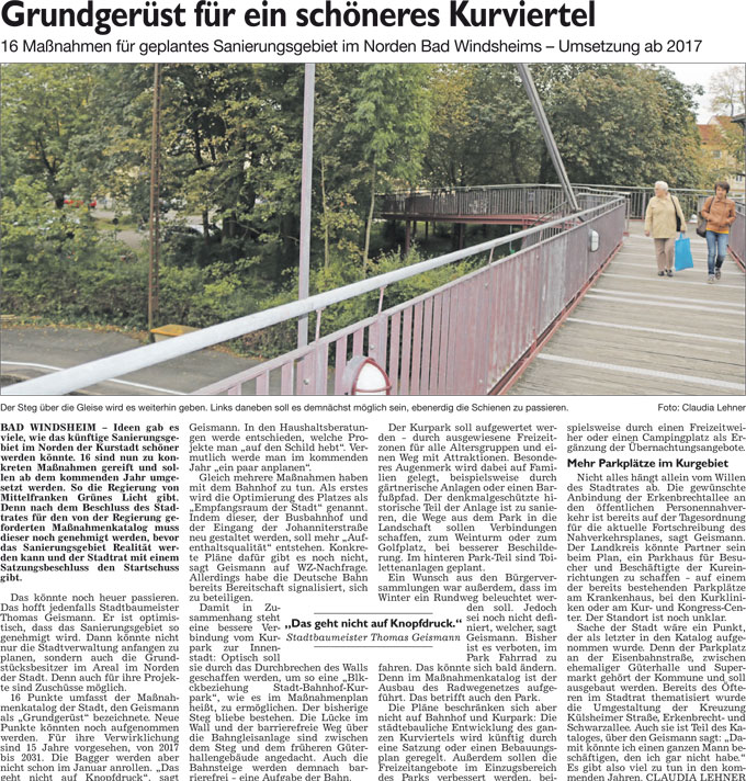 WZ 7. 10. 2016 "Füße still halten am Holzmarkt", "Grundgerüst für ein schöneres Kurviertel"