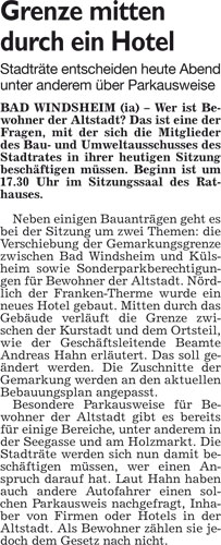 WZ 11. 10. 2016 "Grenze mitten durch ein Hotel"