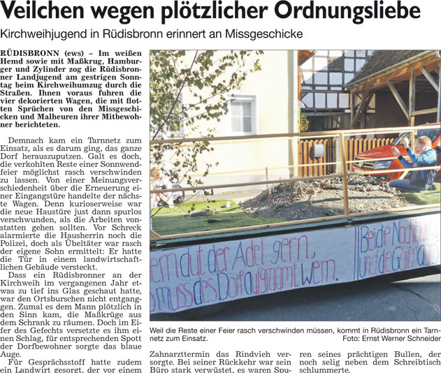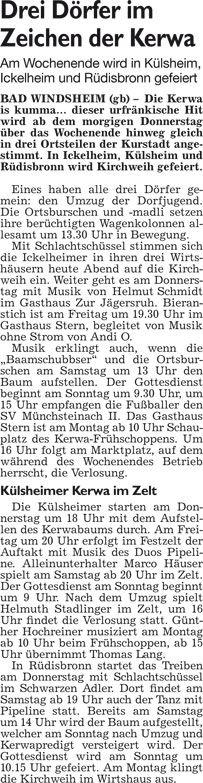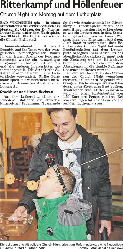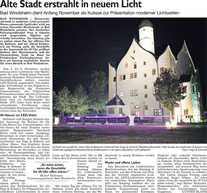 WZ 12. 10. 2016 "Drei Dörfer im Zeichen der Kerwa", "Alte Stadt erstrahlt in neuem Licht"