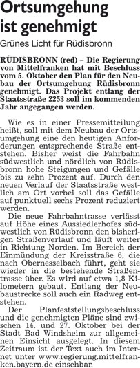 WZ 13. 10. 2016 "Külsheim ist kleiner geworden", "Ortsumgehung ist genehmigt"