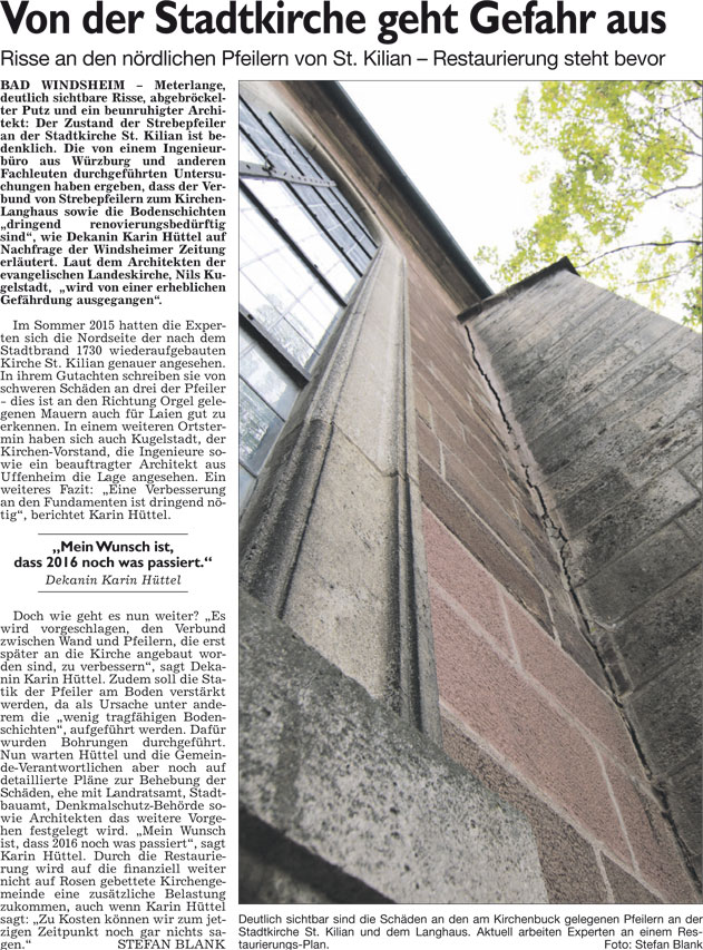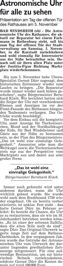 WZ 15./16. 10. 2016 "Von der Stadtkirche geht Gefahr aus", "Astronomische Uhr für alle zu sehen"