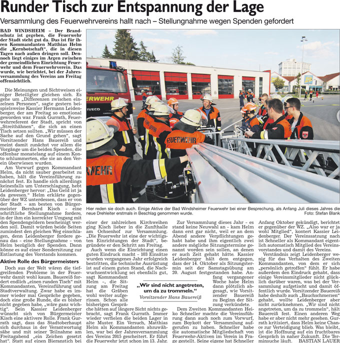WZ 18. 10. 2016 "Runder Tisch zur Entspannung der Lage", "Die Feuerwehr macht sauber", "Beim Baumschneiden ins Wasserbad"