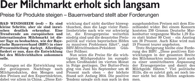 WZ 20. 10. 2016 "Keine Zweifel an Ordnungsmäßigkeit", "Der Milchmarkt erholt sich langsam"