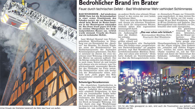 WZ 22./23. 10. 2016 "Bedrohlicher Brand im Brater"
