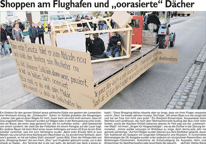 WZ 10. 10. 2016 "Wo Hinz und Kunz keine Chance haben", "Dorfgeschichten unterm Regenschirm"
