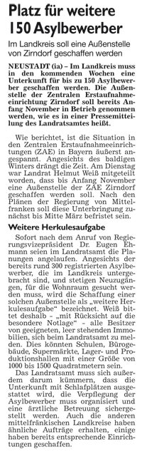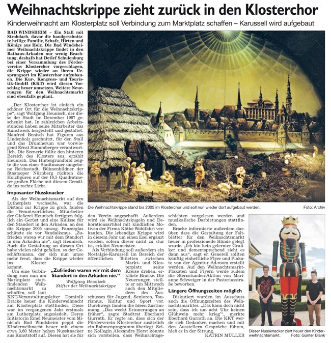 WZ 10. 10. 2014 "Nicht mehr, nicht weniger", "Bonbon für Nachtwächter","Weihnachtskrippe zieht zurück in den Klosterchor","Zwei Listen für ein Gremium", "Interesse am "Baamaland" neu geweckt", "Experten kennen den Namen", "Bürgermeister besichtigt den Landkreis"